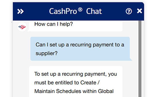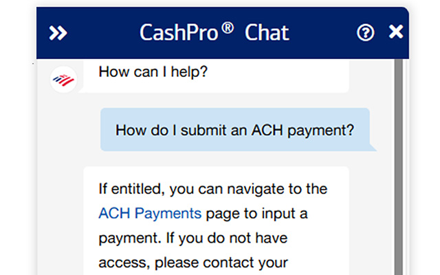 Get answers instantly from CashPro Chat